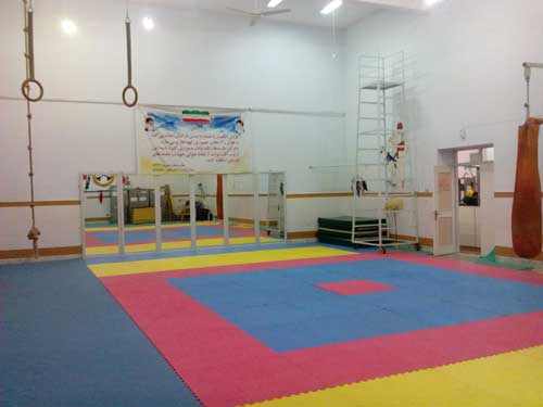 کف تمامی سالن تاتامی ۵ سانتی می باشد ، کف پوش رول مخصوص ژیمناستیک با عرض دو متر در ۱۵ متر، کیسه بوکس بزرگ چرمی و کوچک فومی،دار حلقه ژیمناستیک، تخت ترامپولینگ تخت فنر تخت خرک مطبق قابل تنظیم ارتفاع ، تشک های کوچک ۱*۲ متر و یک تشک بزرگ ۲/۵*۳/۵ متر ضخیم ، رختکن ، طناب ضخیم گره دار آویز از سقف، تمامی امکانات رشته های رزمی از جمله میت های شلاقی پنجه ای بالشتی چرمی و فومی و کاپ محافظ و ساق پا و هوگو و کلاه به تعداد نیاز از هر کدام، دستگاه پاباز مخصوص تمرین اجرای حرکت ۱۸۰ درجه پا، استپ آمادگی جسمانی ، حلقه کمر ، وزنه های دمبلی سبک وزن از نیم کیلو تا دو کیلو و .... و دیگر